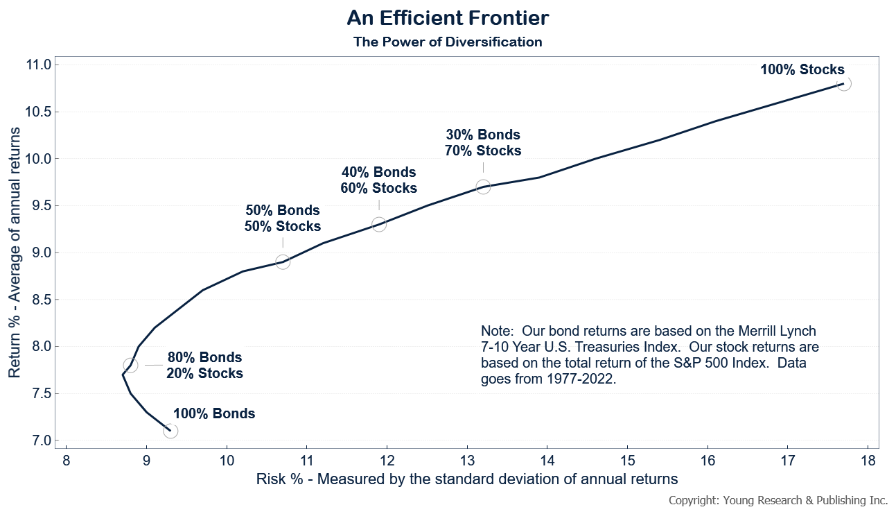 Or maybe a more sophisticated one like the efficient frontier model, which is the set of optimal portfolios that offer the highest expected return for a defined level of risk or the lowest risk for a given level of expected return.